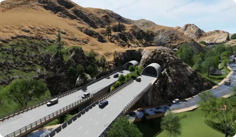 This part of North Tehran Freeway has been started since 2017 and is a concept design free company Office buildings and the entire road project including tunnels, bridges, waterfalls and road equipment have been developed as well as project animation from scratch. Up to 100 to help the customer walk through the model whenever and wherever they want. This model and animation helped equip the road at a better time and cost